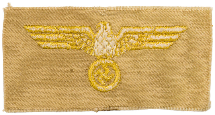 BACKGROUND: The Kriegsmarine adopted wear of the new national eagle on the front of the headgear and the right breast of the uniform on March 24TH 1934. The Kriegsmarine originally used white uniforms and headgear as their tropical dress. The Kriegsmarine developed two separate brown tropical uniforms, with one being introduced before the outbreak of the war and the second one during the war.