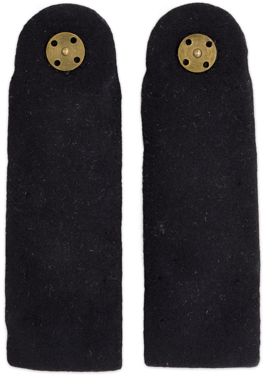 PHYSICAL DESCRIPTION: Sew on shoulder boards in interwoven, silver/aluminum Russian braiding, mounted on mid-blue wool bases. Original buttons included.