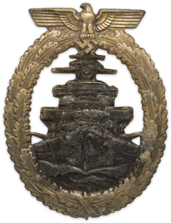BACKGROUND: The High Seas Fleet War Badge was instituted by Oberbefehlshaber der Kriegsmarine und Großadmiral, (Commander in Chief of the Navy and Grand Admiral), Erich Raeder on April 30TH 1941 to recognise the actions of personnel serving on German battleships and cruisers in the battle against England. Bestowal criteria varied with the main qualification being twelve weeks of active service on a battleship or cruiser.