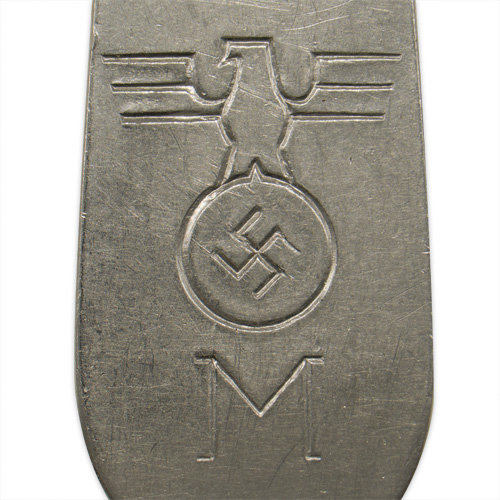 PHYSICAL DESCRIPTION: The single piece, tooled stainless steel construction mess hall/galley four tine fork is roughly, 20cm long. The reverse is well marked with an impressed Eagle with three feathers, indicating Kriegsmarine issue over "M".