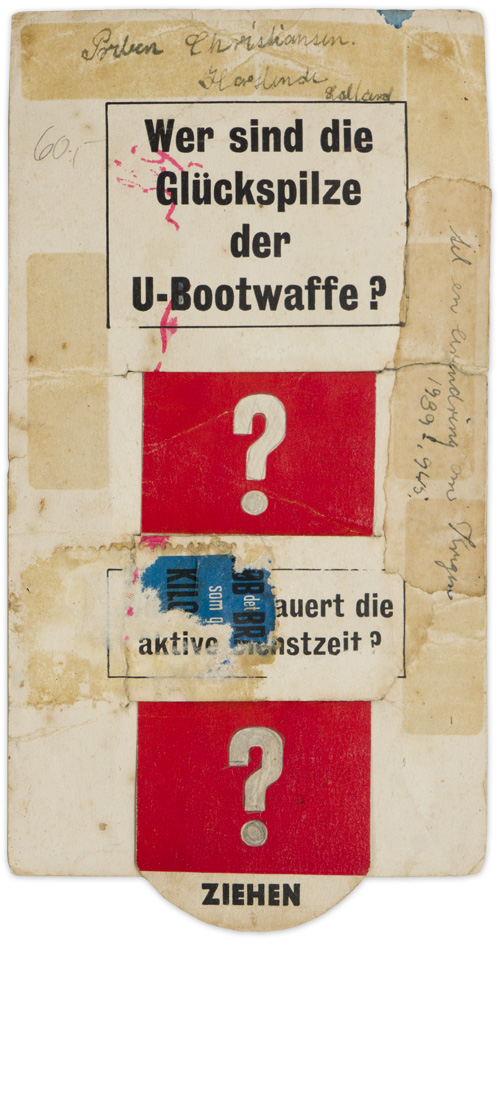 Original WW2 British Leaflet “Freiwillige Vor für die U Boot Waffe!”. British interactive leaflet for German civilians. When pulled, the U boat explodes, and the Kriegsmarine sailor dies. Has one tear and several folds but still functions.