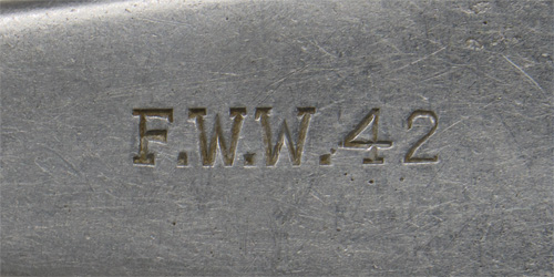 PHYSICAL DESCRIPTION: The single piece, tooled stainless stell construction mess hall/galley four tine fork is roughly, 21.5cm long. The obverse of the handle has a low, central ridge and the reverse is well marked with an impressed Eagle with three feathers, indicating Kriegsmarine issue over "M".