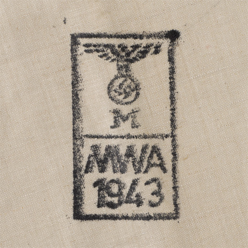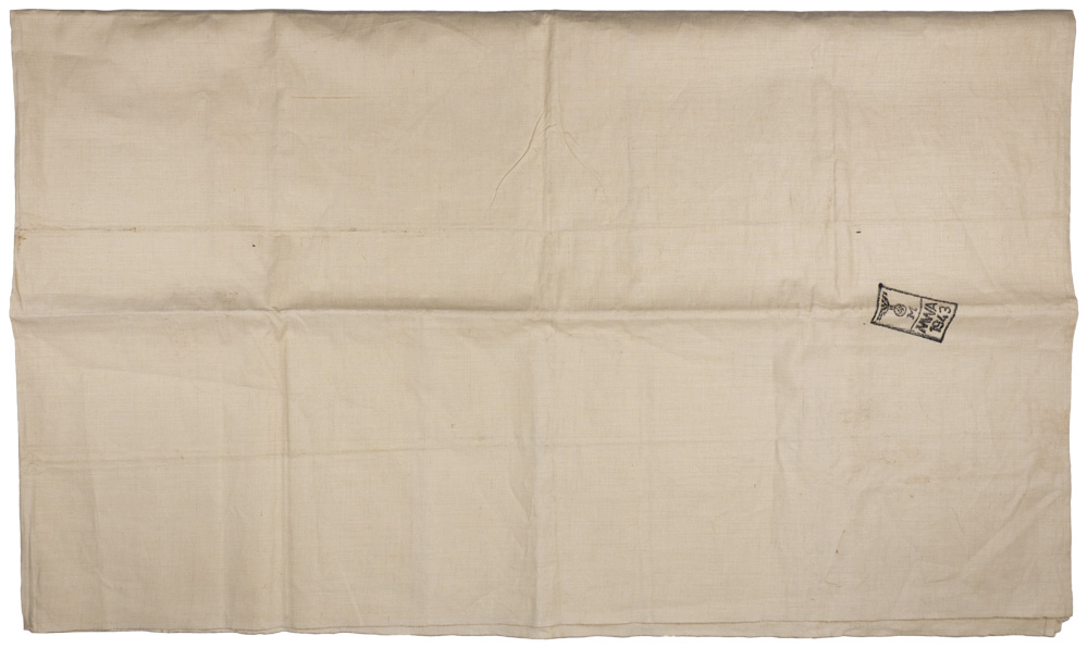 A white, linen pillow table cloth/sheet measuring approximately 112cm x 130cm. Nicely eagle over "M" marked with a 1943 date.