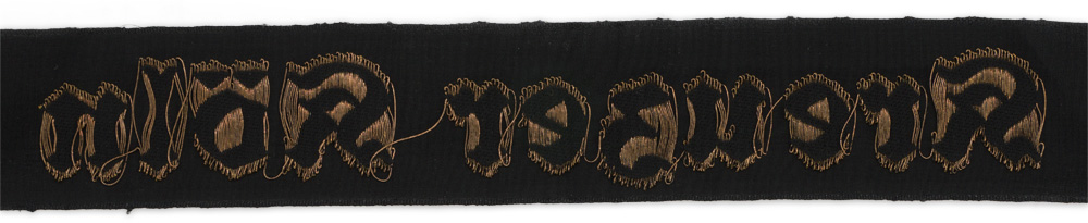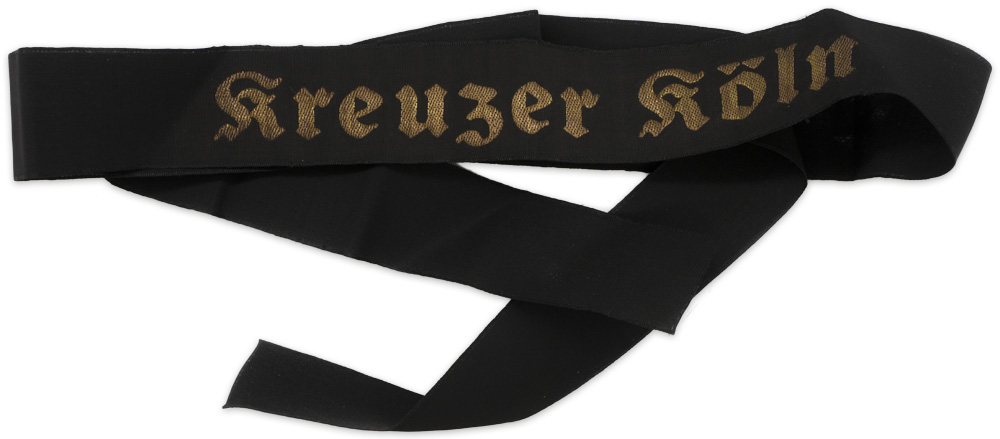 PHYSICAL DESCRIPTION: Early, (pre-November 1936), black silk construction cap talley with machine woven Gothic script, "Kreuzer Köln", in gilt flat-wire threads. The cap talley is roughly, 120cm long.