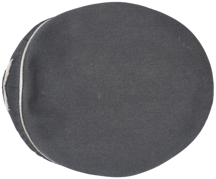 BACKGROUND: Visor caps were a standard item for all military personnel during the Third Reich period and regulations dictated the form of dress they were to be worn with, based on the individual’s rank. On its inception on February 26TH 1935, the Luftwaffe adopted most of the uniform items of the earlier DLV, Deutscher Luftsportverband, (German Air Sports Association), its clandestine, civilian forerunner, including the visor cap. In March 1935 the earlier, "Tellerform", saucer shaped, caps were replaced with a new a "Sattelform" cap with a higher front peak and an oval shaped top. The insignia utilized on the visor caps consisted of the Luftwaffe style national eagle as introduced for wear by Fliegerschaft, (Pilot Base), personnel of the DLV on August 18TH 1934 and was officially adopted for wear by all Luftwaffe personnel on March 1ST 1935 along with a new winged wreath and national tri color cockade. The visor caps for Company and Field grade Officers holding the ranks of Leutnant up to Oberst were distinguished from EM/NCO’s caps by bright, silver/aluminum piping and a silver/aluminum chin cord while Officers holding Generals ranks of Generalmajor up to Reichsmarschall utilized gold colored fittings. EM/NCO ranks visor caps utilized the appropriate waffenfarbe, (Branch of Service Color), piping and blackened leather chinstraps. Officers and certain senior NCO ranks were responsible for purchasing their own caps and as a result were allotted a clothing allowance through the Luftwaffe’s Verkaufsabteilung, (Air Force Sales Department), system. The Officers and certain senior NCO’s could choose to purchase their caps from the armed forces clothing depots or to privately purchase visor caps of higher quality. Although enlisted personnel were issued their caps from government supplies they were also permitted to purchase privately tailored caps although the price may have been restrictive. This example is a privately purchased cap with minor variations from the officially issued caps with the most noticeable deviation being the lack of the simulated leather trim applied to the forward edge of the visor. A photographic example of a similar cap can be seen in B. L. Davis’s book, Uniforms and Insignia of the Luftwaffe, Volume 1: 1933 1940 on page 207.