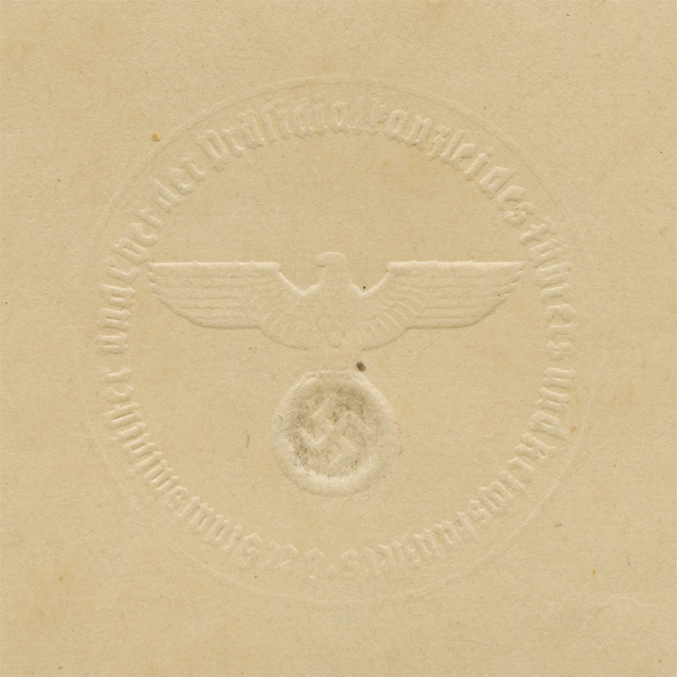 L000787 CIVIL AIR DEFENCE HONOR DECORATION 2ND CLASS, 1938 AWARD DOCUMENT. (Luftschutz Ehrenzeichen)