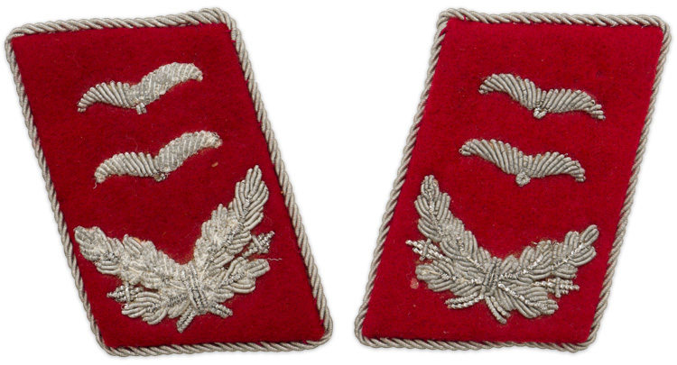 BACKGROUND: The Reichsluftwaffe was officially established on February 26TH 1935 as the third branch of service of the German Armed Forces. On March 9TH 1935 the formation of the new Reichsluftwaffe was announced to the foreign press and on March 16TH conscription was reintroduced for all three branches of service. On May 21ST 1935 the Reichsluftwaffe designation was altered to Luftwaffe. Collar tabs were adopted by the newly formed Luftwaffe on April 14TH 1935 and followed the basic pattern of the collar tabs that had been utilized by the DLV, Deutscher Luftsportsverband, (German Air Sports Association), the Luftwaffe’s clandestine civilian forerunner. The collar tabs were worn in matching pairs and indicated the branch of service and rank of the wearer. The different branches of service within the Luftwaffe were allocated specific, identifying, waffenfarbe, (Branch of Service Color), with bright red being chosen for personnel serving with the Flugzeugabwehrartillerie, (Anti-Aircraft Artillery), units which was generally displayed as the base color of the collar tabs. Of Note: The Flak arm is often viewed as a secondary arm of service within the Luftwaffe when in fact during the war between half and two thirds of all Luftwaffe personnel served in a Flak unit.