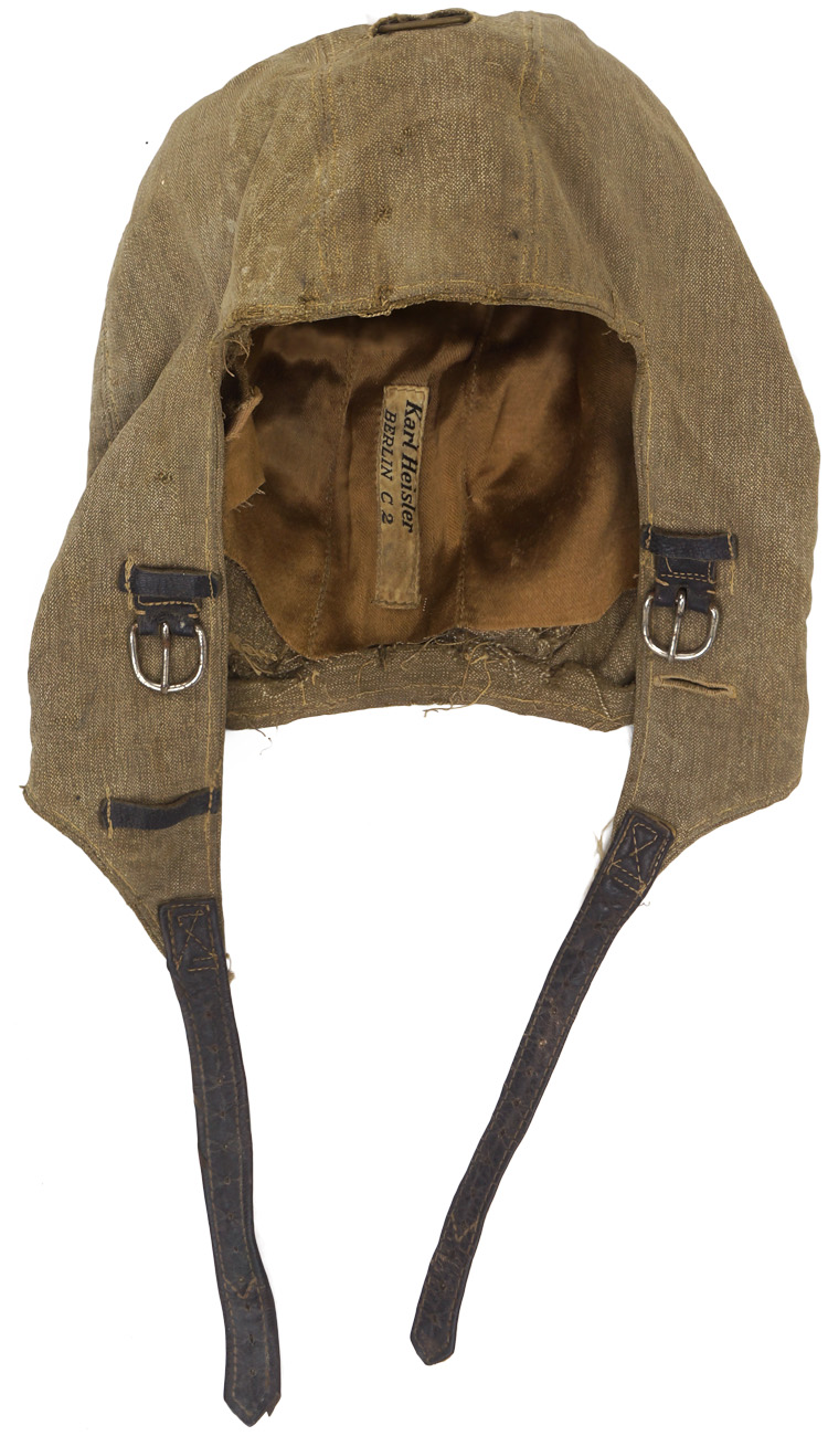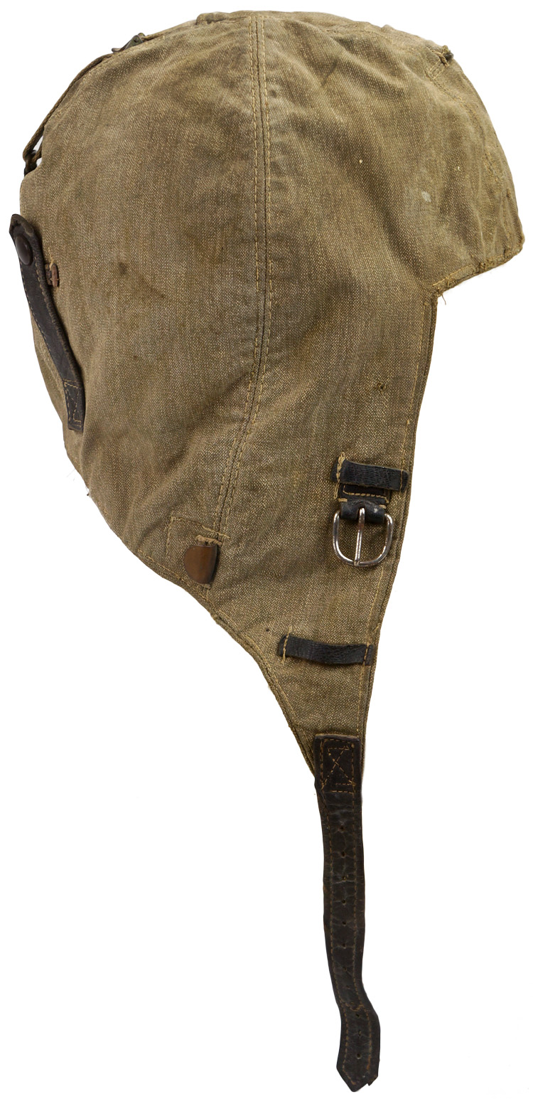 BACKGROUND: With the advent of military aircraft in WWI most of the early pilots soon discovered that appropriate protective headgear was a necessity due to the cold and the all too frequent occurrence of oil leaking into the slipstream and covering the pilot. Originally the German military was caught unprepared and no specific headgear or uniforms for pilots were available. This resulted in the pilots utilizing commercially produced motor car helmets. These tight fitting, soft leather helmets proved to be ideal and future flight helmets were basically modified versions of the early motor car helmets.