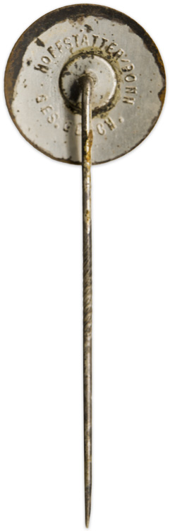 PHYSICAL DESCRIPTION: Roughly, 20mm diameter, die struck alloy construction, first pattern, (circa 1933-1938/39), RLB emblem, lapel pin with bright silver washed and mid-blue enameled finishes. The pin features a mid-blue, enamel base with a central, embossed, forty-eight point, silver washed, sunburst pattern with the superimposed, stylized, mid-blue enameled, initials, "RLB" to the center, positioned above a small, canted, mid-blue, enameled, swastika. The reverse of the pin is well marked with the embossed, manufacturer’s name and location and, "Ges. Gesch.", indicating, Gesetzlich Geschützt (Protected by Law). Complete with its original 50mm rifled pin.