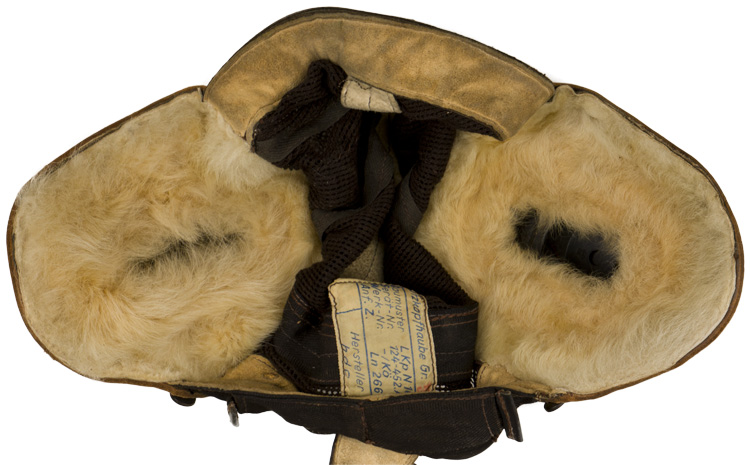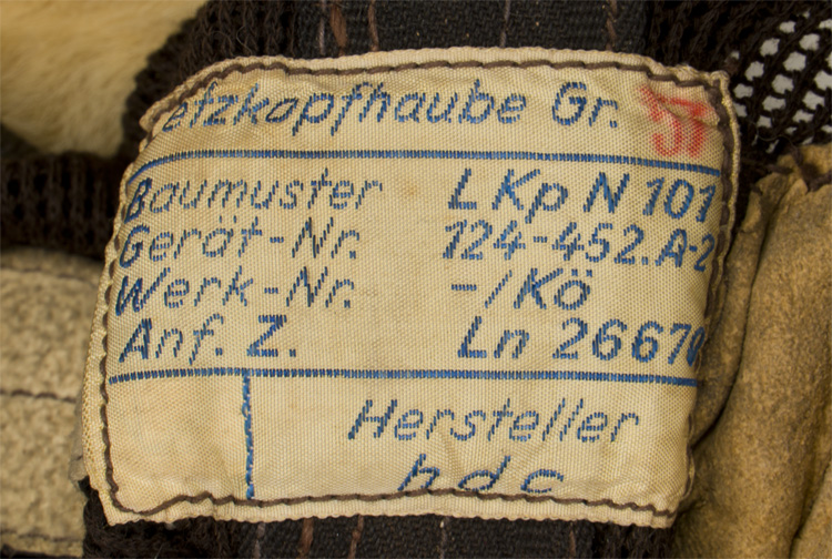 BACKGROUND: With the advent of military aircraft in WWI most of the early pilots soon discovered that appropriate protective headgear was a necessity due to the cold and the all too frequent occurrence of oil leaking into the slipstream and covering the pilot. Originally the German military was caught unprepared and no specific headgear or uniforms for pilots were available. This resulted in the pilots utilizing commercially produced motor car helmets. These tight fitting, soft leather helmets proved to be ideal and future flight helmets were basically modified versions of the early motor car helmets. The LKpN101 flight helmet came in two slightly different variations but retained the same designation for both patterns. The earlier pattern had a two point oxygen mask attachment while the later pattern was equipped with a three point oxygen mask attachment. Both of these patterns were predominately used by fighter pilots.