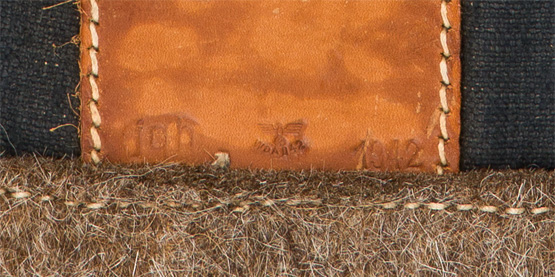 PHYSICAL DESCRIPTION: Blue/grey canvas construction K98 receiver cover with leather and steel fittings. One of the interior protective leather panels is well marked with an impressed waffen-amt and manufacturer’s three letter code and date, "jqh 1942", indicating manufacture by Walter Krause Lederverarbeitungs-Industrie of Bromberg in 1942. Nice!