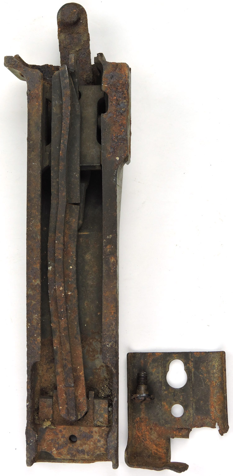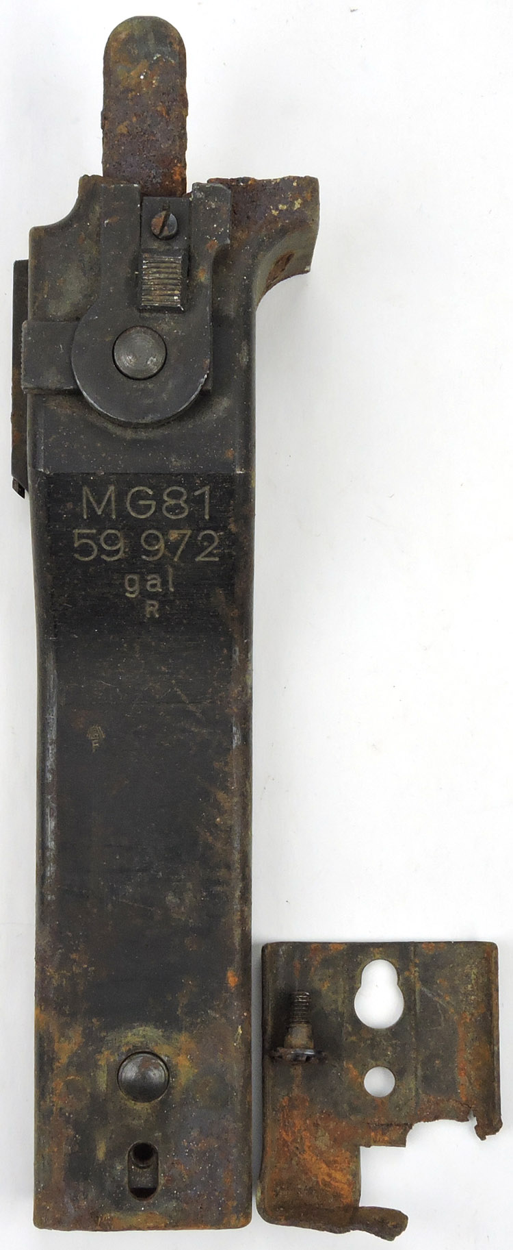 The MG81 was a German belt fed 7.92×57mm Mauser machine gun, used in flexible installations in World War II Luftwaffe aircraft, replacing the older drum magazine-fed MG 15.PHYSICAL DESCRIPTION: Tooled steel construction. Nicely marked "MG81" and maker marked "gal". Also comes with it original damaged closer "slide".