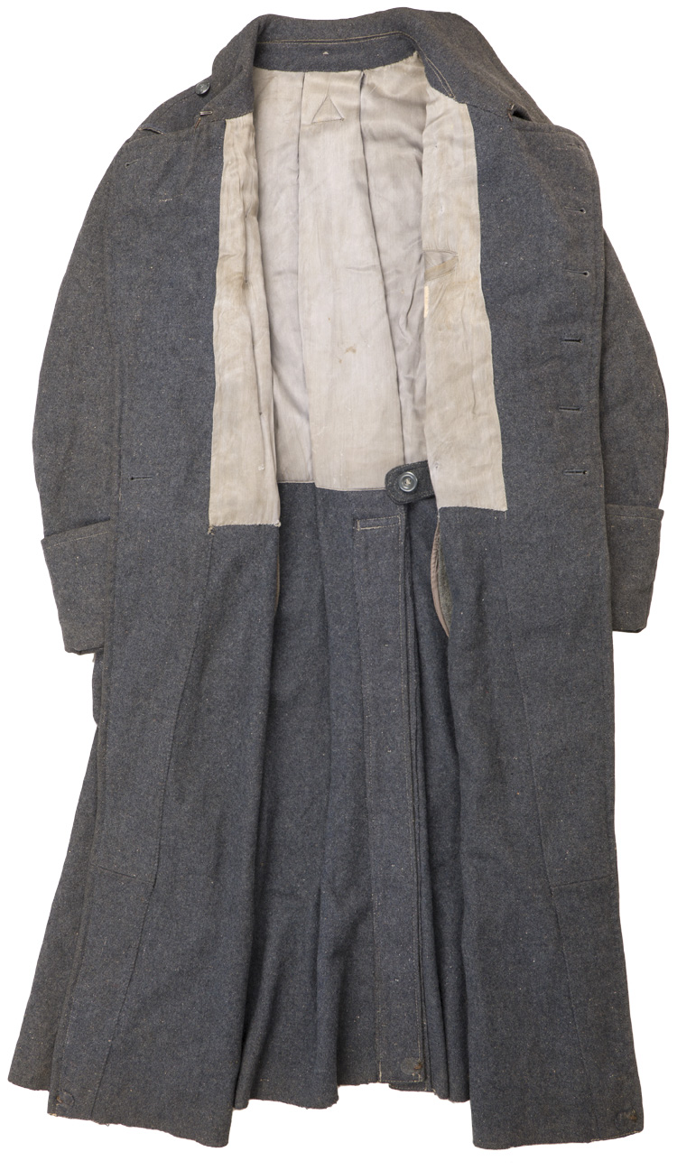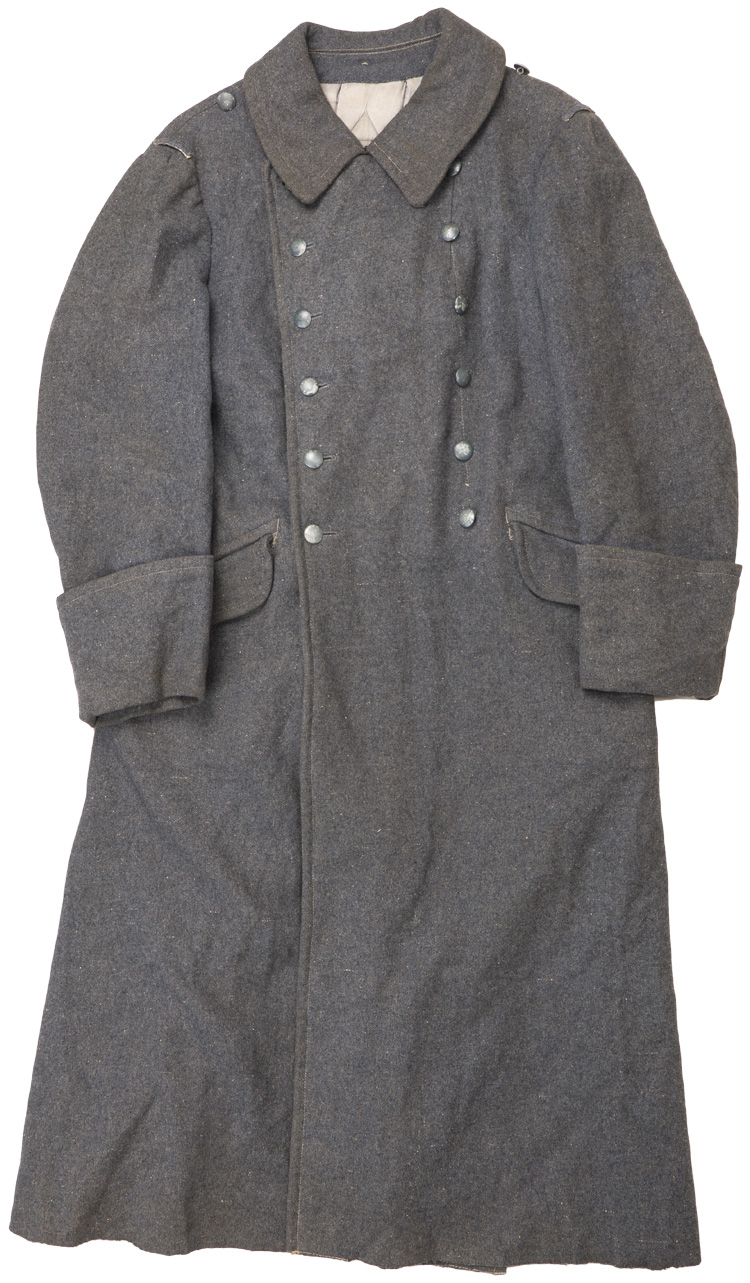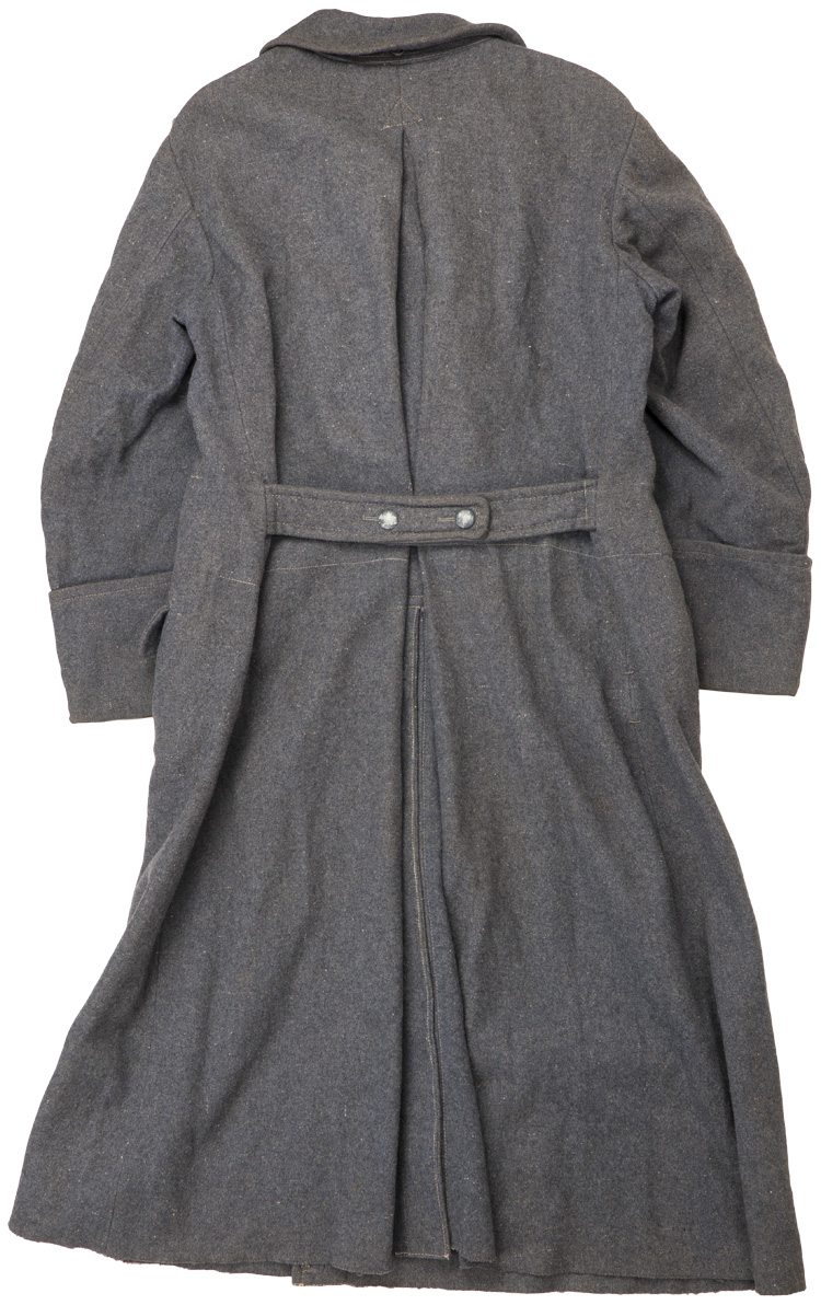 BACKGROUND: The Greatcoat was an essential uniform item worn by all ranks, with minor variations, and followed the basic design of the Imperial German army’s greatcoat. The Luftwaffe version of the greatcoat was first introduced by the DLV, Deutscher Luftsport Verband, (German Air Sports League), the clandestine, civil forerunner of the Luftwaffe, and was adopted for wear in the Luftwaffe on its inception in March 1935. During the war the standard issue greatcoat underwent a few minor modifications. The early production greatcoats came with button holes on both the left and right front closure panels which allowed the coat to be button up either left or right handedly and small metal hooks positioned at both sides of the bottom front closure panels, and additional small metal hooks positioned at both sides of the reverse tail skirt vent with corresponding thread loops situated at the side seams just below the waistline designed to allow the wearer to hook the tail skirt up out of the way when mounted or on the march. Both of these features were abolished by regulations of March 20TH 1940 although they were not strictly adhered to. Originally the buttons on the greatcoats for the ranks of Soldat to Oberst were silver finished while the ranks of Generalmajor to Reichsmarschall wore gilt finished buttons but just prior to the war buttons for the ranks of Soldat to Stabsfeldwebel were altered to a blue/grey finish. Unlike the army Luftwaffe personnel utilized collar tabs on their greatcoats until regulations of May 29TH 1942 abolished the collar tabs for EM/NCO personnel with the stipulation that they be removed by October 1ST 1942. Additional regulations of January 4TH 1943 reinstated the use of collar tabs on the greatcoat for EM/NCO personnel serving with Herman Göring Wacht Regiment Berlin, (Guard Regiment), and the Führer-Flakabteilung, (Führer Anti-Aircraft Battalion). Besides the standard greatcoat the Luftwaffe also introduced a heavy surcoat with an additional blanket lining for stationary personnel and drivers of opened cab vehicles and on October 17TH 1942 the Luftwaffe introduced the universal greatcoat that was intended to replace both the standard greatcoat and the surcoat but the change over was never complete and the standard greatcoat was worn through-out the war. Officers and certain senior NCO ranks were responsible for purchasing their own uniforms and as a result were allotted a clothing allowance through the Luftwaffe’s Verkaufsabteilung, (Air-Force Sales Department), system. The Officers and certain senior NCO’s could choose to purchase their uniforms from the armed forces clothing depots or to privately purchase garments of higher quality. Although enlisted personnel were issued their uniforms from government supplies they were also permitted to purchase privately tailored uniforms although the price may have been restrictive.