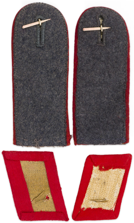 The Reichsluftwaffe was officially established on February 26TH 1935 as the third branch of service of the German Armed Forces. On March 9TH 1935 the formation of the new Reichsluftwaffe was announced to the foreign press and on March 16TH conscription was reintroduced for all three branches of service. On May 21ST 1935 the Reichsluftwaffe designation was altered to Luftwaffe. Collar tabs were adopted by the newly formed Luftwaffe on April 14TH 1935 and followed the basic pattern of the collar tabs that had been utilized by the DLV, Deutscher Luftsportsverband, (German Air Sports Association), the Luftwaffe’s clandestine civilian forerunner. The collar tabs were worn in matching pairs and indicated the branch of service and rank of the wearer. The different branches of service within the Luftwaffe were allocated specific, identifying, waffenfarbe, (Branch of Service Color), with bright red being chosen for personnel serving with the Flugzeugabwehrartillerie, (Anti-Aircraft Artillery), units which was generally displayed as the base color of the collar tabs. Of Note: The Flak arm is often viewed as a secondary arm of service within the Luftwaffe when in fact during the war between half and two thirds of all Luftwaffe personnel served in a Flak unit.PHYSICAL DESCRIPTION: Collar tabs are miss-matched, gull most probably added later. Nice pair of sewn on straps.