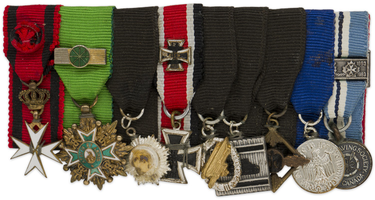 H019488 NINE PLACE MINIATURE WEST GERMAN/CANADIAN MEDAL BAR. |