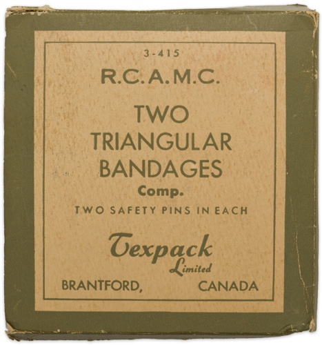 C025993 "R.C.A.M.C. TWO TRIANGULAR BANDAGES" WITH CARTON. |