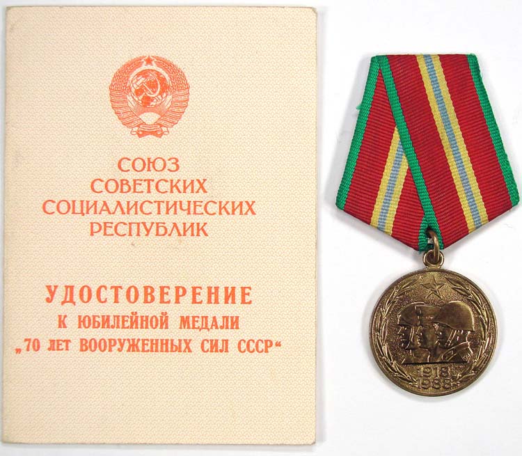 C025760 JUBILEE MEDAL ESTABLISHED ON THE OCCASION OF THE 70th ANNIVERSARY OF THE USSR ARMED FORCES. |