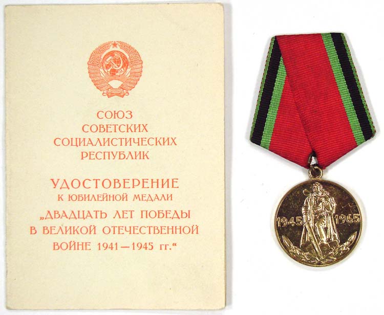 C029160 JUBILEE MEDAL ESTABLISHED ON THE OCCASION OF THE 20th ANNIVERSARY OF VICTORY IN THE GREAT PATRIOTIC WAR. |