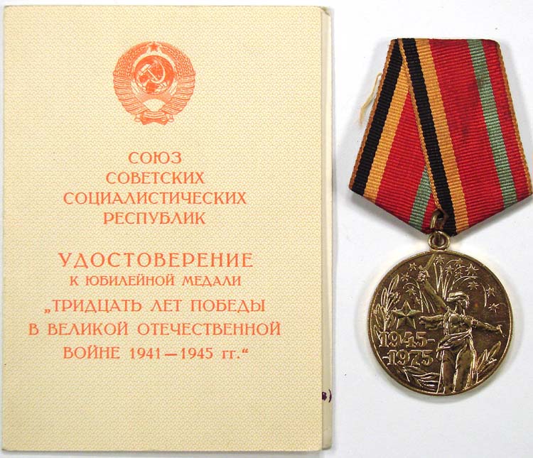 C026860 JUBILEE MEDAL ESTABLISHED ON THE OCCASION OF THE 30th ANNIVERSARY OF VICTORY IN THE GREAT PATRIOTIC WAR. |
