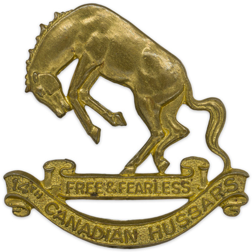 C023789 "14TH CANADIAN HUSSARS" CAP BADGE. |