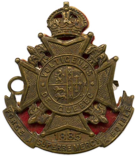 C045988 CANADIAN VOLTIGEURS DE QUEBEC REGIMENT CAP BADGE. |