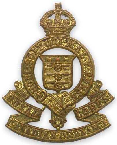 C050083 WW2 ROYAL CANADIAN ORDNANCE CORPS CAP BADGE. |