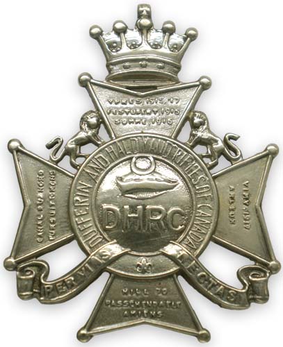 C051983 WWII "DUFFERIN & HALDIMAN RIFLES OF CANADA" CAP BADGE. |