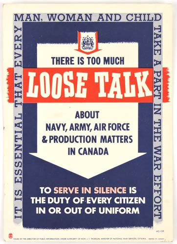 C025381 CANADIAN WW2 PROPAGANDA LEAFLET "LOOSE TALK". |