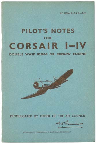 C026083 "PILOT’S NOTES FOR CORSAIR I-IV." |