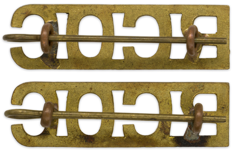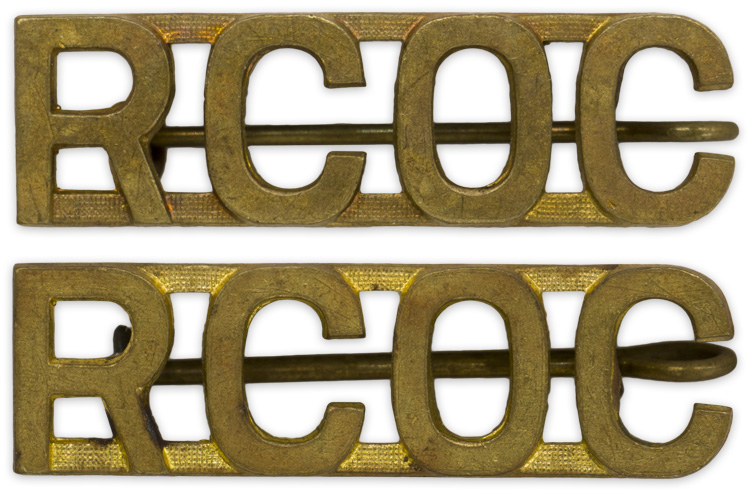 C000791 "R.C.O.C." BRASS SHOULDER FLASHES.