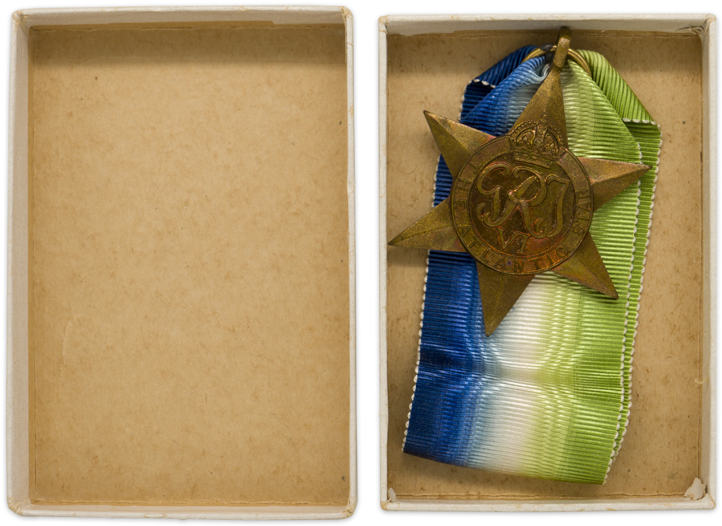 BACKGROUND: Awarded for six months service afloat in the Atlantic or in home waters between September 3, 1939 to August 8, 1945. It was also awarded to air crews who engaged the enemy at sea for a two month period during the same time line. The 1939-1945 Star must have been earned before qualifying for the Atlantic Star.