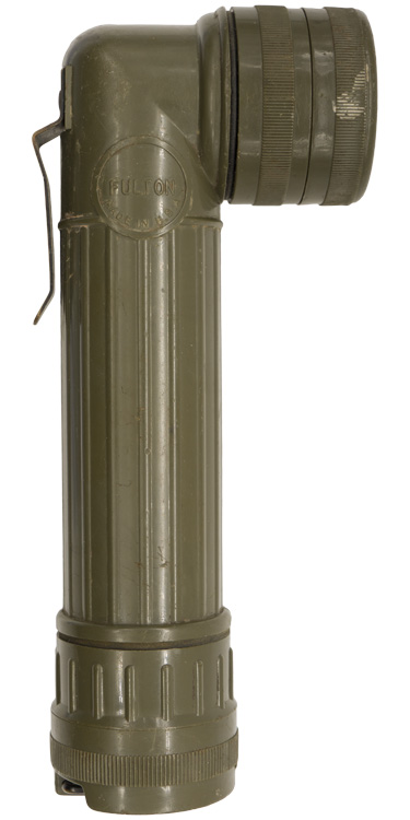 A Fulton MX-991/U OD7 flashlight. Bulb is included, but no batteries. Spare coloured lenses included.