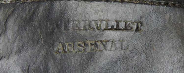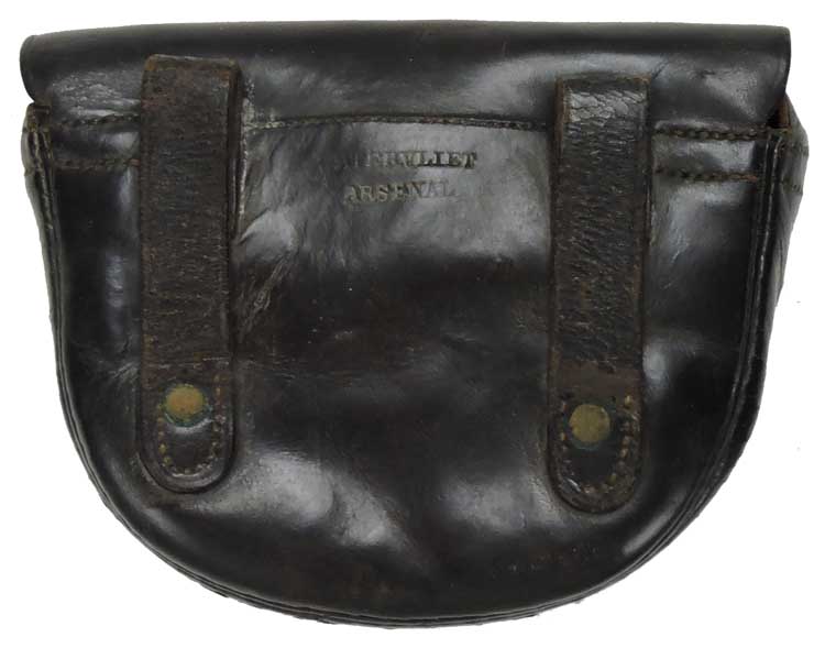 1874 Dyer pouch for use with the Springfield .45/70 " Trapdoor " Carbine as well as the Sharps and Spencer carbine, marked Waterviliet arsenal and is an early production without the U.S. embossing on the front flap. Beautiful condition.