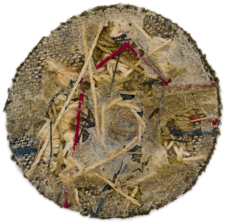 A 5.5cm diameter, embroidered badge showing a rampant Lion and Unicorn on khaki green wool.