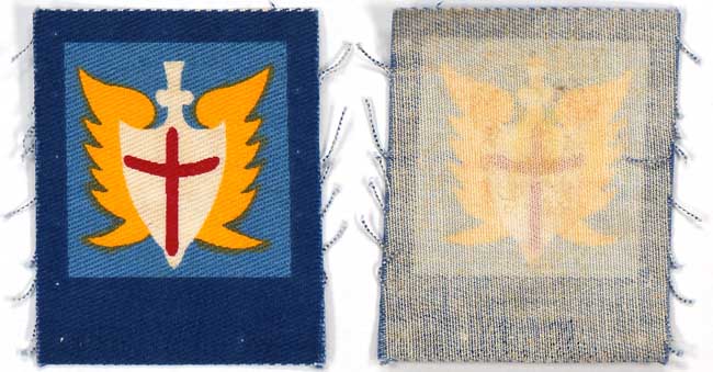 A canvas badge with painted design representing the Allied Land Forces South East Asia. It measures approximately 5.5cm x 7cm. It does not appear to have been issued or worn.GRADE **** PRICE $35.00