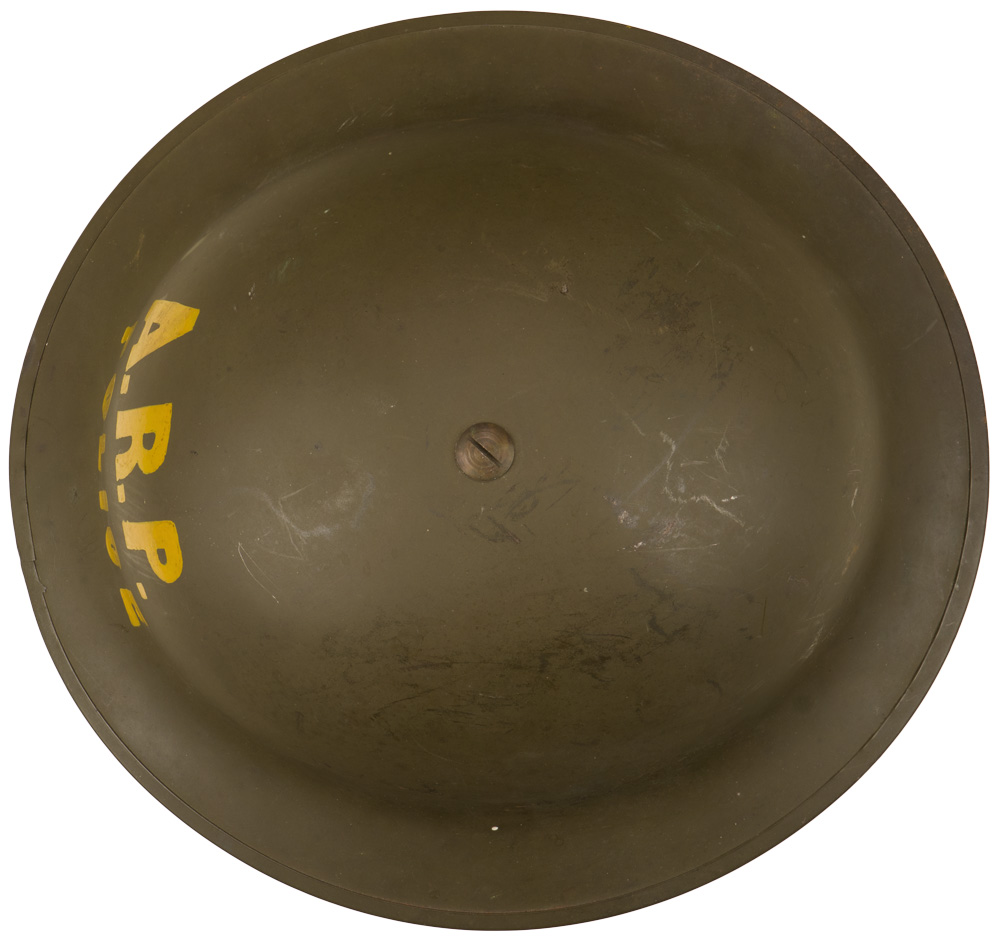 The A.R.P. (Air Raid Precautions) organization was responsible for procuring and issuing of Civil Defense helmets in the UK during WW2. Helmets where issued to workers in areas and factories that where likely to be bombed by the Luftwaffe.PHYSICAL DESCRIPTION: Standard MKII military production example. Retains most of its original paint. Shell is marked "G.S.W" and "DP & H". Canadian made helmet, note the General Steel Wares mm, and the D.P. & H. is for Dept of Pensions and Health. Complete original MKII pattern liner, sized and dated for 1942. Complete original MKII chinstrap. Decent example of an A.R.P. helmet.