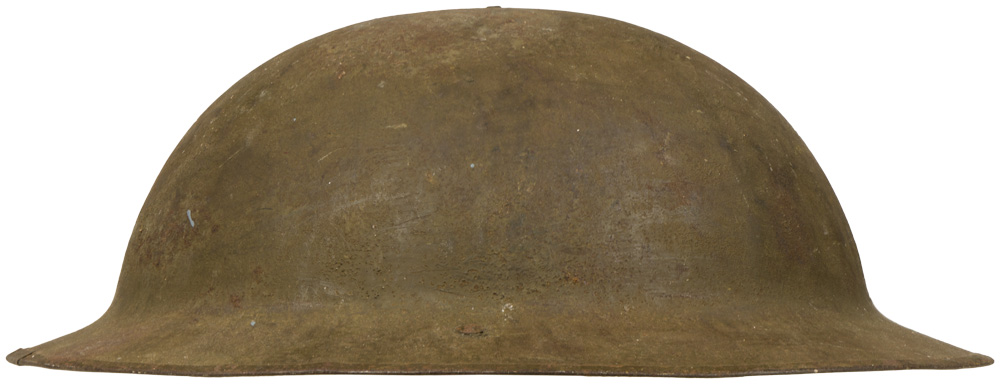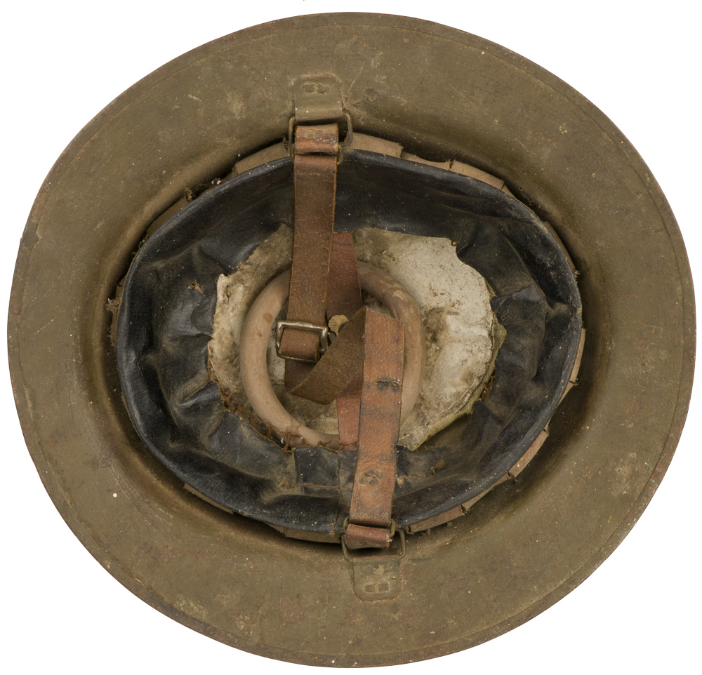 The first "modern" steel helmets were introduced by the French army in early 1915 and were shortly followed by the British army later that year. The M15 helmet became known as the MK I or "Brodie" after its inventor John Leopold Brodie and by July 1916 over a million of them had been delivered. The design allowed for easy mass production using "Hadfield’s" manganese steel and protected the wearer from shell fragments and air-burst shrapnel.PHYSICAL DESCRIPTION: A second pattern (with a magnetic steel rim instead of a raw edge) Mark l non-magnetic hardened manganese steel helmet. Nice complete liner and chinstrap system. To the underside of the rear brim of the helmet body is stamped "FS 15" being the steel supplier’s initial and the code numbers for the batch of steel the helmet was made from. Overall very nice.