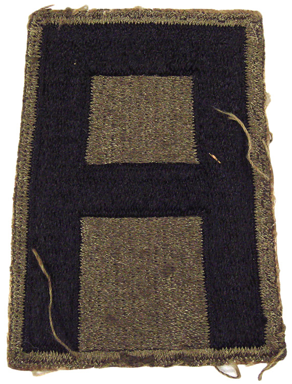 Machine embroidered "A" in black on a olive drab background. Approximately 7.5cm x 5.5cm. There is some fraying to the edges, but overall a nice example.