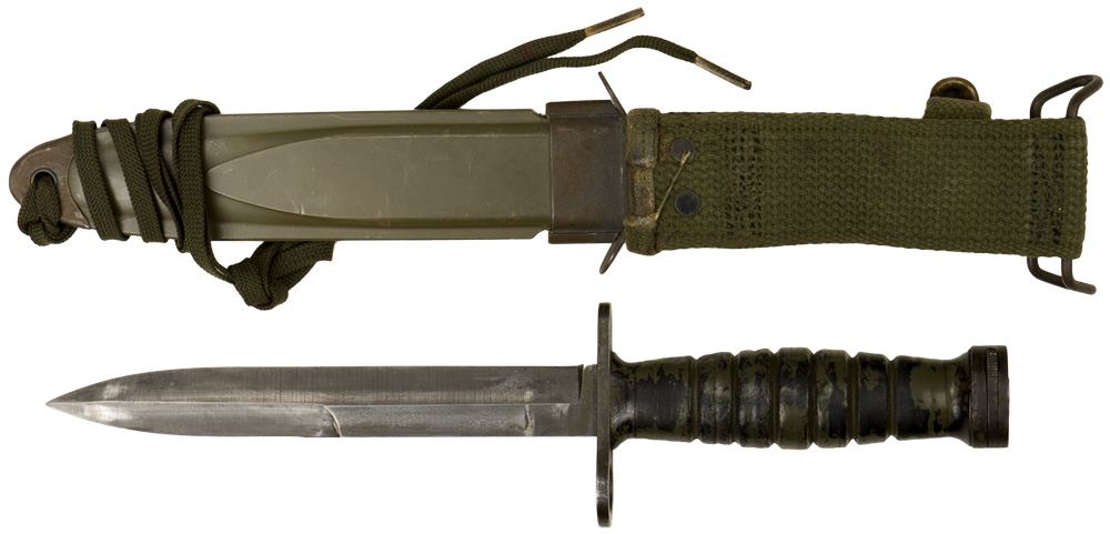 BACKGROUND: The M-4 bayonet was designed for use with the M-1 Carbine and was very similar to the US M3 Combat/Trench Knife. It could be utilized as a fighting knife or as a bayonet and was used during WWII and the Korean conflict.