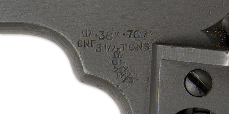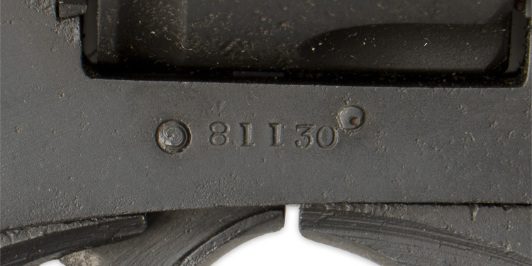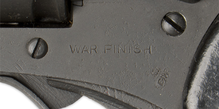 A Mk. IV, .38 pistol with original lanyard with a late war finish. Cock/click de-activation. Nicely marked.