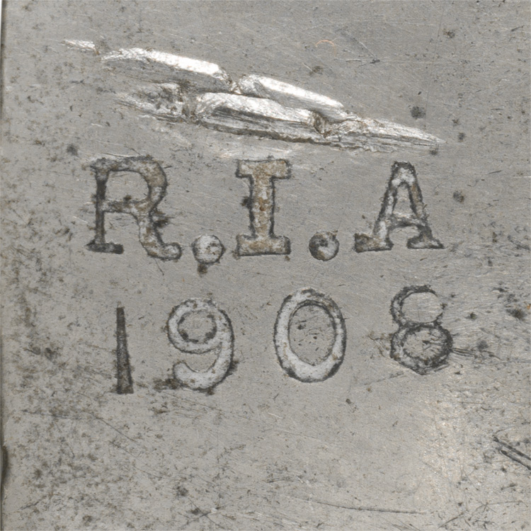 M1908 Rock Island Arsenal officers Nickel Spurs, an excellent matched pair. Produced by the ordinance Department at R.I.A. for the Mounted Officers. Complete with " False Rowels " and function as they should , each spur is stamped "RIA 1908".