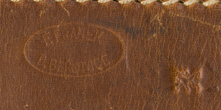 A brown leather frog measuring approximately 22.5cm long. The leather is embossed to the rear loop "F.Franek, D. Berkovice" along with a left facing, rampant lion. The stitching remains strong with typical usage and wear to the leather.