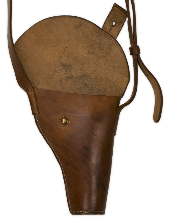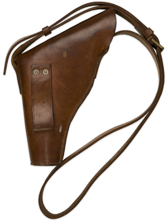 Flare pistol leather holster with shoulder strap (1941-dated & made in Toronto, Ontario).