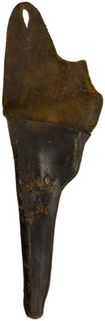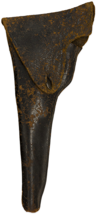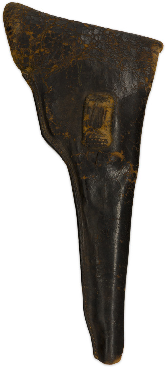Civil War era Full Flap Army Holster. This regulation full flap, left hand draw. This commercial holster is perfect to display with either the U.S. or C.S. officers effects and were known to be used by both sides. Well worn and used example. This one originally had held Remington Model 1858 at one point. Ex Roy Akins collection.