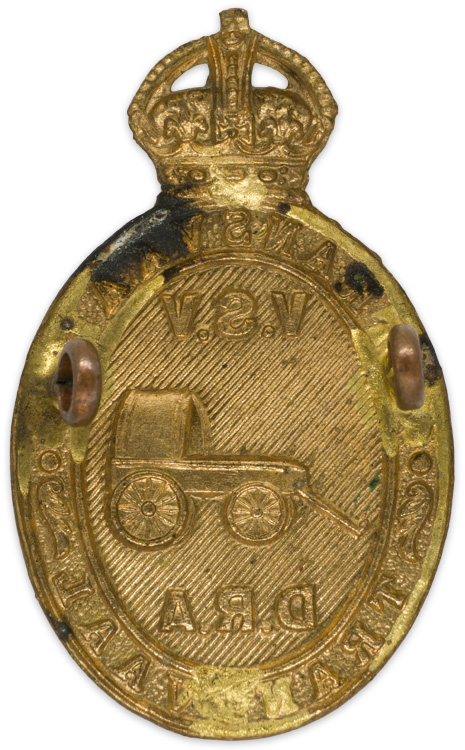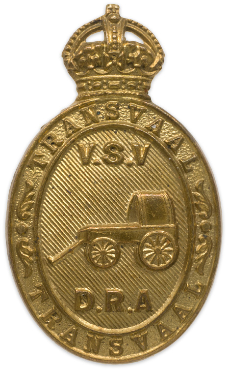 C017886 SOUTH AFRICAN "TRANSVAAL V.S.V. D.R.A." OFFICER’S CAP BADGE.