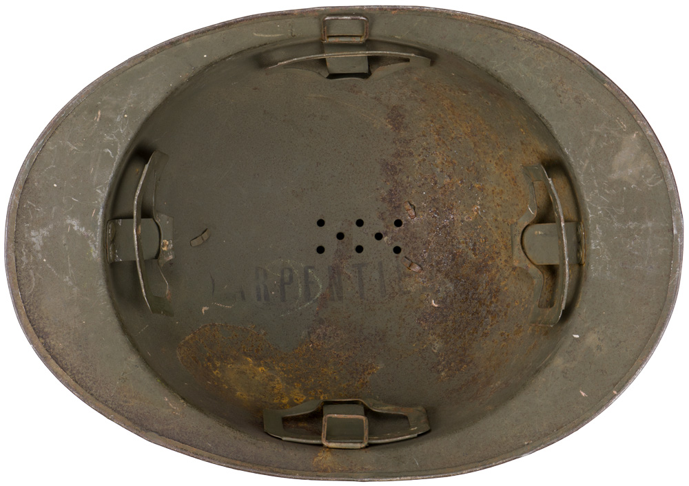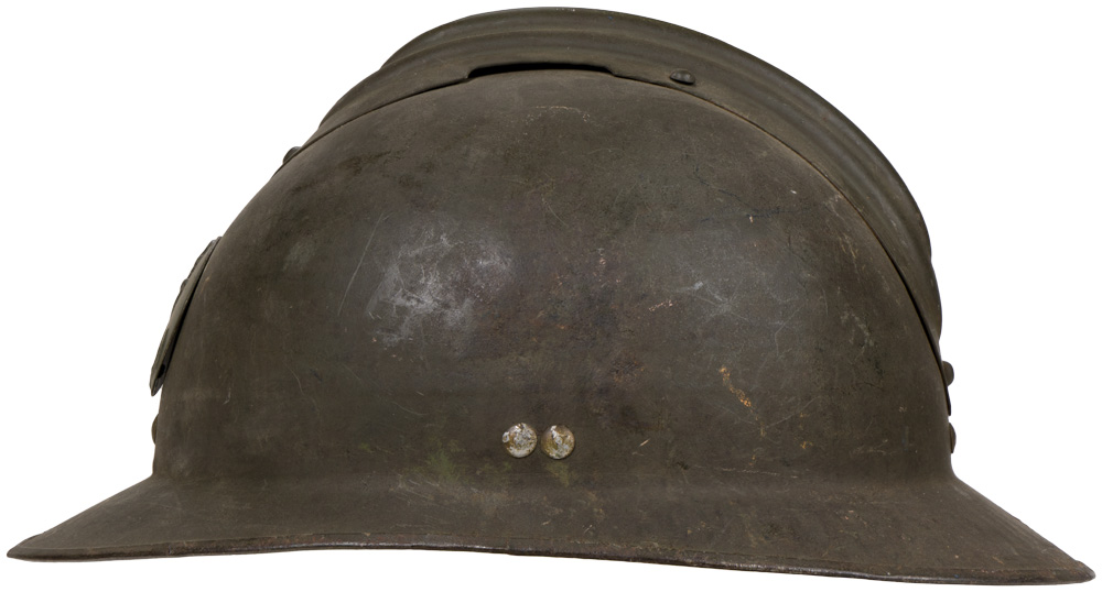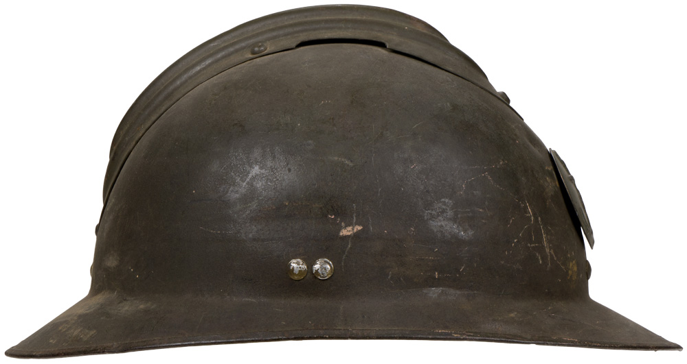 BACKGROUND: The French were the first to have a general issue, "modern ", steel helmet in WWI and developed the classic "Adrian" style helmet in early 1915 followed by the British army later that year and by the German’s in 1916. By September of 1915 most French front line personnel had received the helmet and by the end of the year over three million had been manufactured and distributed. The next helmet produced by the French was the M26. It differed from the M16 by being pressed out of a single piece of manganese steel and had a different liner making it easier to manufacture.