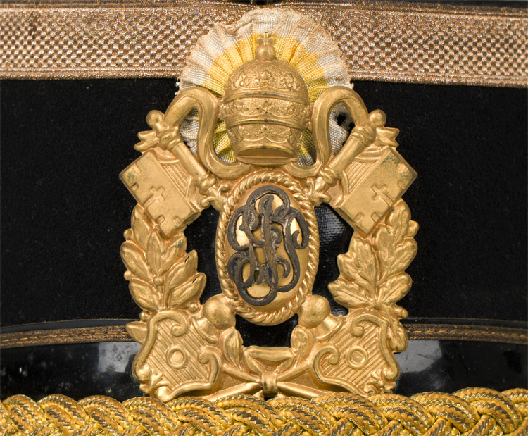 GPP over the crossed keys and papal tiara. The kepi has its metal pompom and red