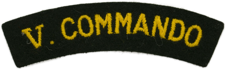 C020394 WW2 BRITISH “V.COMMANDO” SHOULDER FLASH.