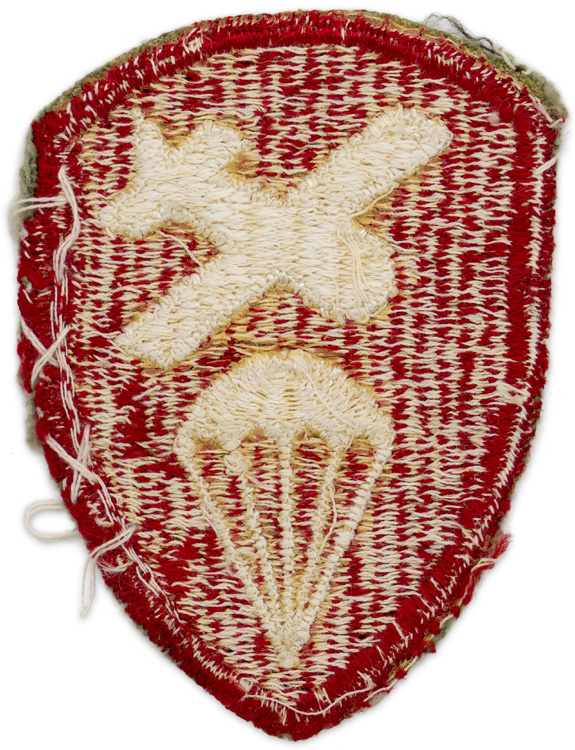BACKGROUND: The glider and parachute represent the twelve glider regiments and the sixteen parachute infantry regiments that were trained for five separate airborne divisions by the Airborne Command during World War II.