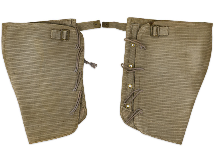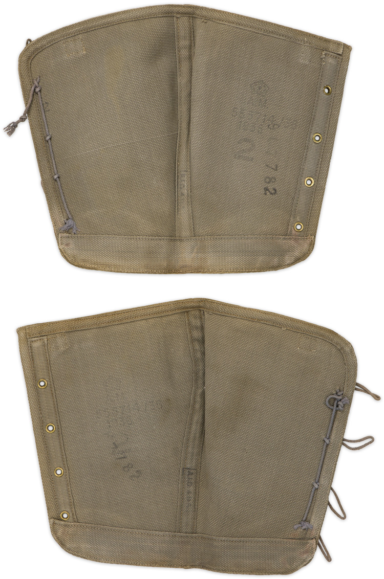 A blue/grey pair of size 2 gaiters dated 1935 with the Air Ministry stamp to the pair. They measure approximately 30cm in height and do not appear to have been issued. Nice condition.